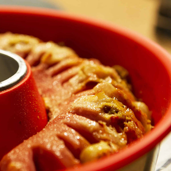 Den smarta designen gör bakningen mer effektiv, och med lite fett släpper bakverken ännu enklare från formen. Den livfulla röda färgen ger dessutom en fräsch touch till ditt kök.