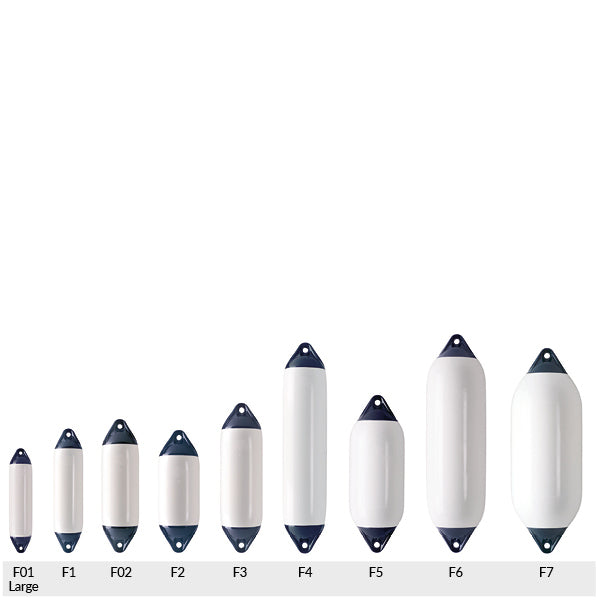 Kvalitetsfender från norska Polyform! F-serien är en premium fenderserie med storlekar som passar allt från små jollar, till stora fartyg. Polyform F-serien tål alla slags väderförhållanden, och används av marinen, kustbevakningen, på färjor och fritidsbåtar av alla dess slag. Polyform F-serien · Polyform fendrar är designade och testade i Norge, och tillverkas på Polyforms fabrik i Ålesund. · Fendern är rotationsgjuten och har inga skarvar. · De är testade för att fungera i temperaturer från -30˚C till 50˚C. · Linhål i båda ändar · Rekommenderat tryck: 0,15 bar / 2 psi (bör inte pumpas hårdare) Minskat miljöavtryck I linje med Polyform's engagemang för hållbarhet inkluderar Polyform biobaserade* råvaror i alla våra uppblåsbara bojar och fendrar, vilket minskar koldioxidavtrycket med 8 %. Samma unika kvalitet med ett förbättrat miljöavtryck. *Biobaserade material ersätter fossila råvaror med förnybar biomassa enligt principerna om massbalans.Specifikationer