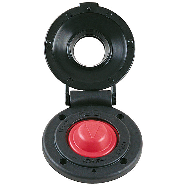 Fotbrytaren är tillverkad av svart hårdplast och har en röd tryckknapp med en uppåtpil, vilket gör det lätt att se vilken funktion som är aktiv. Den är kompatibel med både 12V och 24V system, vilket gör den mångsidig och lämplig för olika typer av båtar.