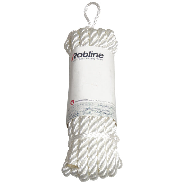 Robline, Förtöjningslina 3-strängad, Vit, 12mm x 6m, Brytstyrka 2000 kg
