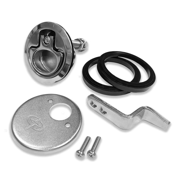För användning på alla typer av däcksluckor, från en liten ankarlåda till en stor maskinrumslucka. Detta infällda kompressionsbeslag är tillverkat i blankpolerat 316 rostfritt stål. Det fjäderbelastade handtaget ger 4 mm kompression vid nedfällning så att luckan blir vattentätt och vibrationsfri. För att undvika skador så kan man fälla ned handtaget när beslaget är öppet. Lucklåset levereras i ett komplett kit med: · Distanser för olika paneltjocklekar · En regel med två hål för maximal monteringsflexibilitet · Ett bakstycke Installationen är mycket enkel, du behöver bara göra ett enda hål.Specifikationer