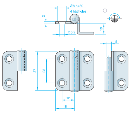 - Typ: Förskjutet dörrgångjärn, högerhänt