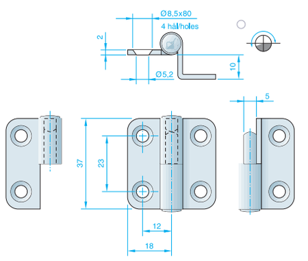 Roca, Förskjutet dörrgångjärn, AISI 304, 38x37x10mm, högerhänt.