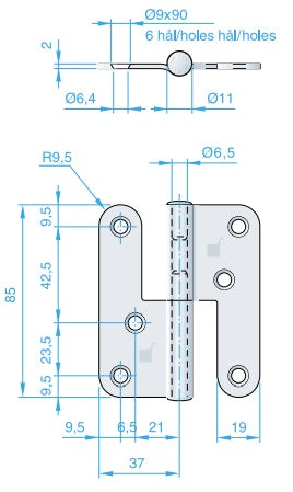 Roca, Dörraxel RF 74x85mm, vänster, AISI 316
