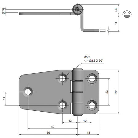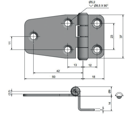 Roca, Offset gångjärn, Rostfritt stål AISI 304, 67,5x37x12mm