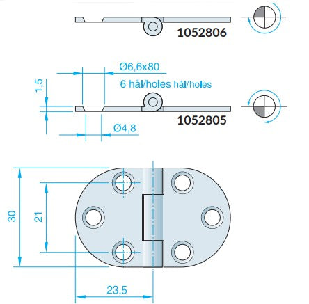 Roca, gångjärn RF 47x30mm, omvänt, AISI 304 rostfritt stål