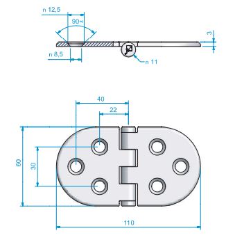 Roca, gångjärn RF, 60x110mm, rostfritt stål AISI 316