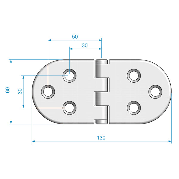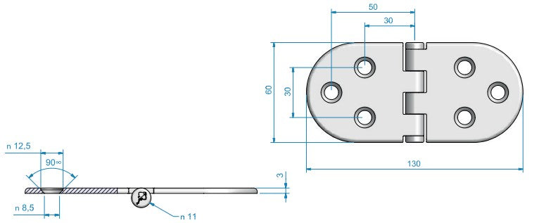 Roca, gångjärn RF 60x130mm, bakåtriktat, AISI 316, dold axel