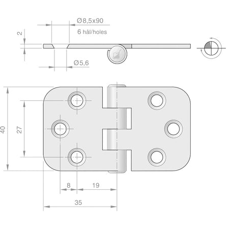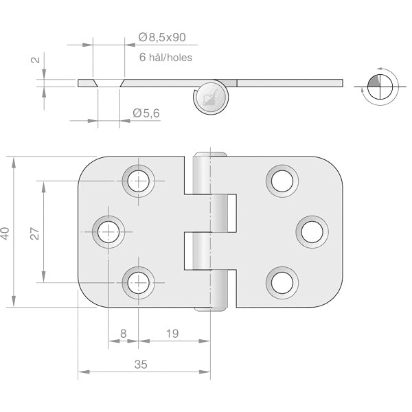 Med en storlek på 70x40 mm är detta gångjärn mångsidigt och passar ett brett spektrum av applikationer. Oavsett om du arbetar med dörrar, fönster eller andra rörliga delar, är detta gångjärn en smart lösning för hållbarhet och funktionalitet.
