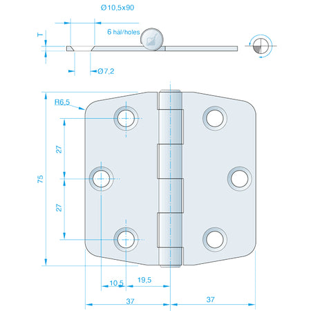 Roca, Gångjärn RF, 74x75mm, Rostfritt stål AISI 304