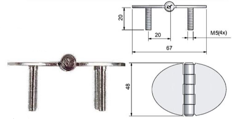 Roca, Elips-gångjärn, AISI 316 rostfritt stål, 67x48mm, inkl. M5-skruvar