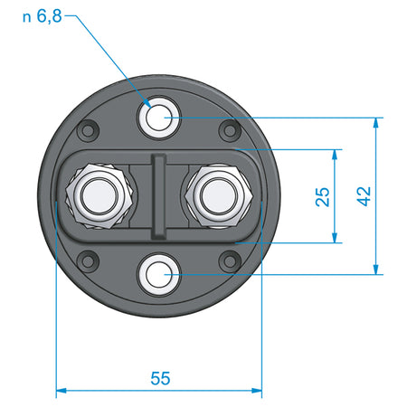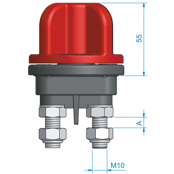 Med en kapacitet på 250 A vid 24 V och en korttidsström på upp till 1000 A DC i 5 sekunder, erbjuder denna strömbrytare robust prestanda. Tillverkad av flamsäker PA-plast, garanterar den hållbarhet och säkerhet även under extrema förhållanden.