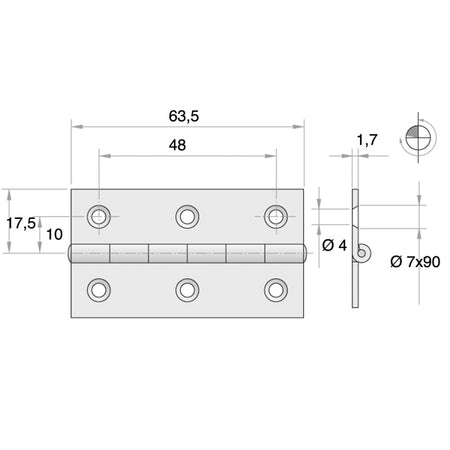 Roca, Kantgångjärn Förkromad, 35x63,5mm.