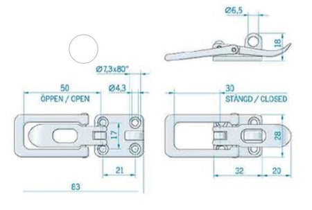 Roca, Låsbeslag för Lugerigel, Förkromad mässing, Lika