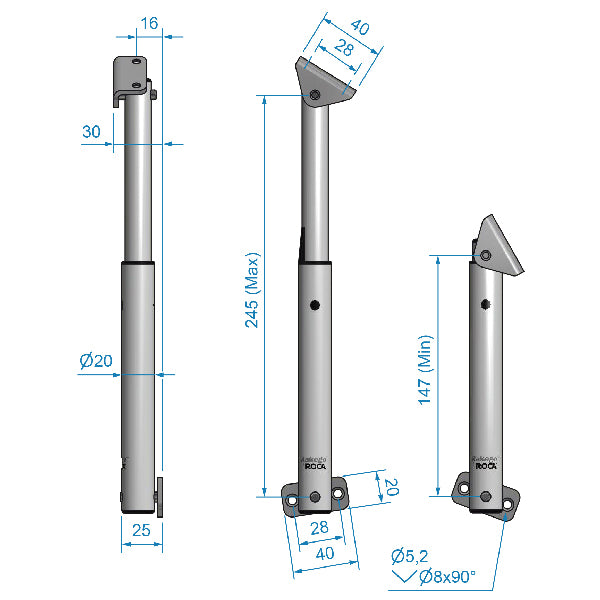Roca, Rekego luckhållare, Elektropolerad, 50 Nm, För både vertikala och horisontella luckor