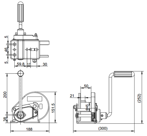 Trailervinschen är utrustad med en autobroms som förhindrar att lasten rinner iväg, vilket ger dig extra säkerhet under användning. Med ett utväxlingsförhållande på 5,1:1 kräver den minimal ansträngning att använda och dess robusta konstruktion säkerställer att den klarar upp till 681 kg.