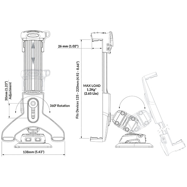 Den justerbara tabletklemmen är designad för att passa både mini- och fullstora tablets, vilket gör den idealisk för användning på båtar där utrymme och stabilitet är av stor betydelse.