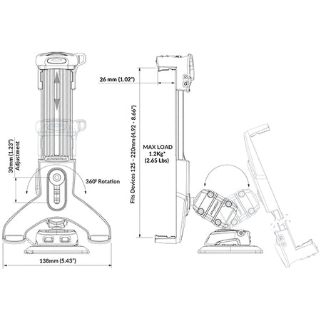 ROKK, iPad/Tablet monteringssats, Självhäftande, 125 mm - 220 mm, maxvikt 1,2 kg