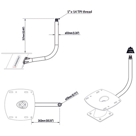 ScanStrut, PowerTower GPS- och VHF-hållare, 1" x 14 TPI, 317 mm
