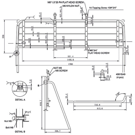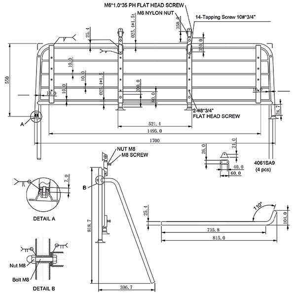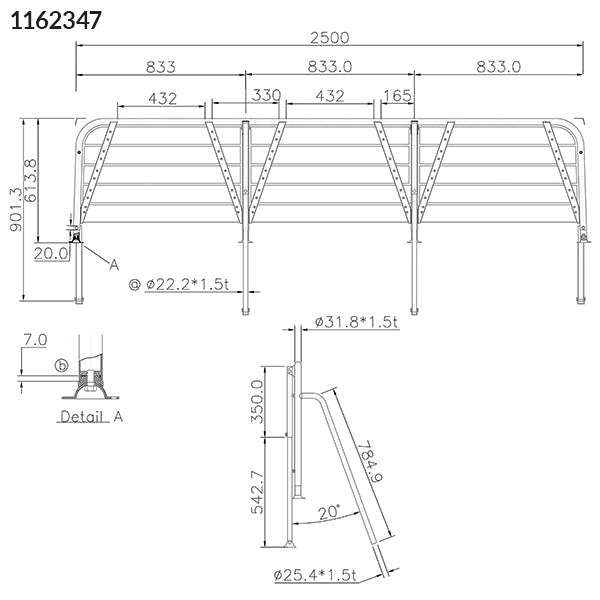 SeaTec, badplattform, L-170cm D-55cm Ø25mm rör, AISI 316 rostfritt stål med teak