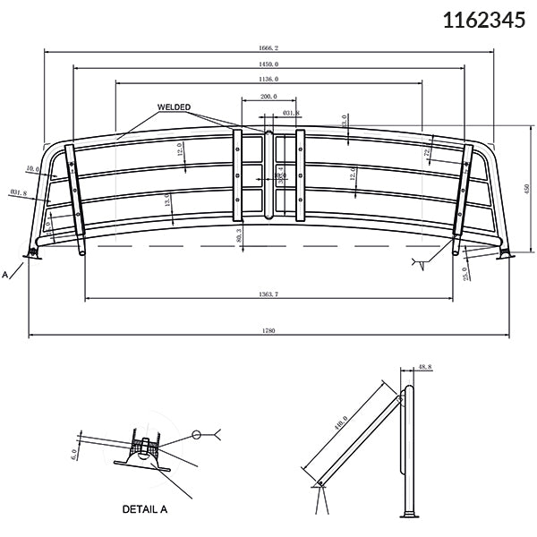 SeaTec, badplattform 178 cm x 45 cm Ø32 mm rör AISI 316 med teak