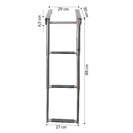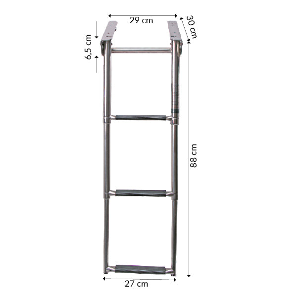 Med tre halkfria steg får du en stabil och säker plattform när du går ombord. Den kompakta designen gör den perfekt för båtar med begränsat utrymme, och den är lätt att förvara när den inte används.