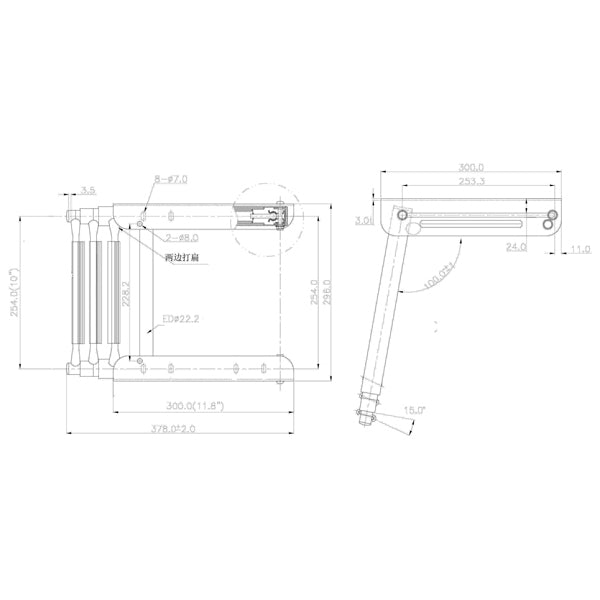 SeaTec, Teleskopstege i kassett, 3 stegpinnar, AISI 316 rostfritt stål, Ø 25 mm
