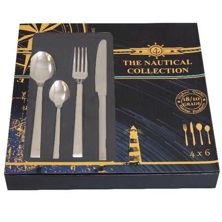 SeaTec, Bestickset med nautiskt ankare, rostfritt stål, 24 delar, levereras i låda
