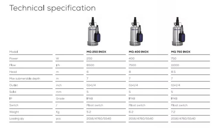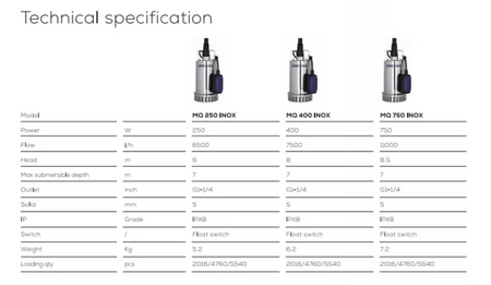 SeaTec, Länspump 12000 l/h, 230V, 550W, IPX8, MQ550 Inox