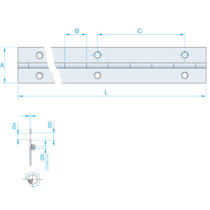 SeaTec, Pianogångjärn, Polerad mässing, 1000x32 mm, Hålavstånd 60 mm