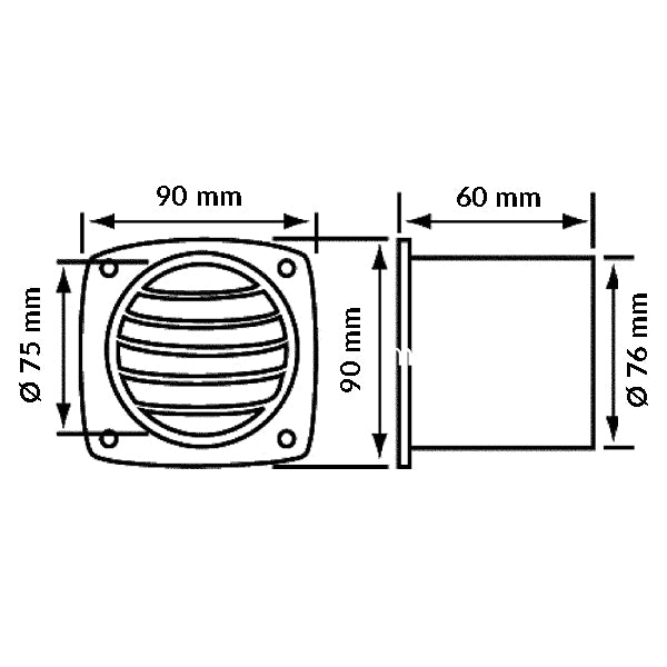 SeaTec, Plastventil med spigot 3", Svart, Ø: 75 mm, 90 mm x 90 mm