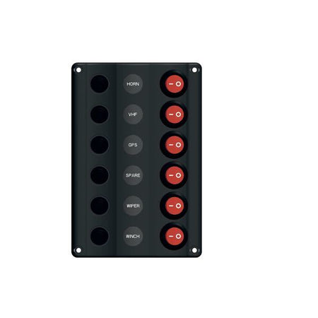 SeaTec Wave elcentral med 6 kontakter, LED och automatsäkring för 12V-system är en pålitlig och effektiv komponent för alla som söker en robust lösning för strömfördelning.