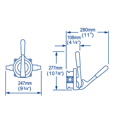 - Alsidigt design: Slangestudse i to størrelser gør det muligt at tilpasse pumpen til forskellige bådtyper.