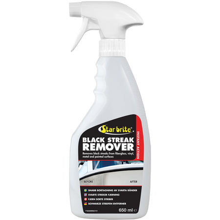 Upplev den snabba och effektiva lösningen för att ta bort svarta ränder från olika ytor med Star Brite Instant Black Streak Remover. Perfekt för båtar, bilar, husvagnar och hemmet, den här praktiska sprayen är designad för att underlätta rengöringen.