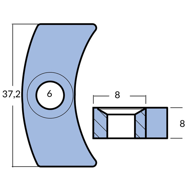 Tecnoseal, monteringsfäste för 2-delad Volvo 120S-drivenhet, Ø6,0 mm, H8 mm, L37 mm, 876286 + 851983