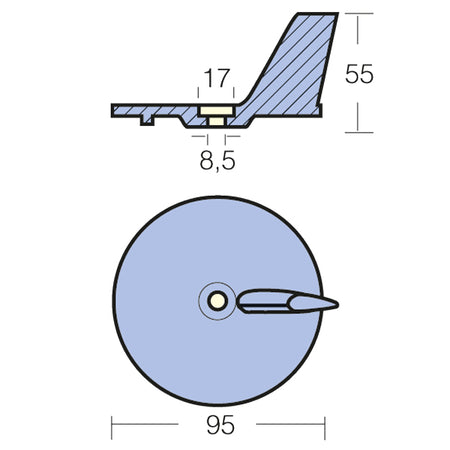 Tecnoseal, Zink anod Yamaha 20-30HP, Ø: 91,5 mm, Hål Ø: 8,5 mm, Höjd: 55 mm