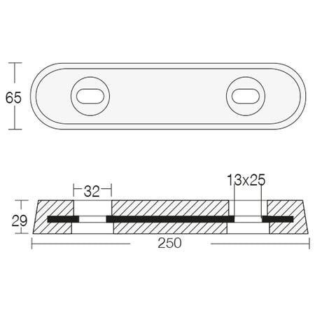 Tecnoseal, zinkanod Vetus, 29x63x250 mm, 140 mm hålavstånd