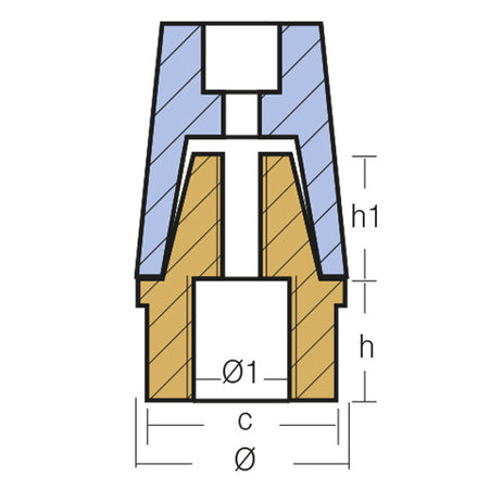 Tecnoseal, zinkmutter 16 mm, Ø22-25 mm, H20 mm, H1 18 mm, C30 mm
