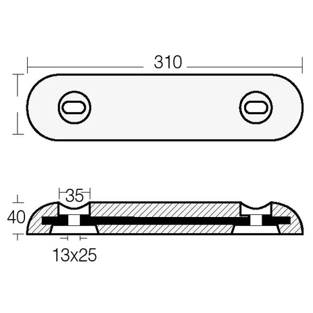 Tecnoseal, zinkplåt Oval 310x75x40mm 4,00kg, Passar Fairline