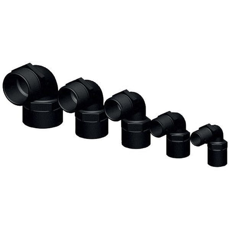 Trudesign, 90° vinkel, 1 1/4" hane/female-gänga, svart komposit