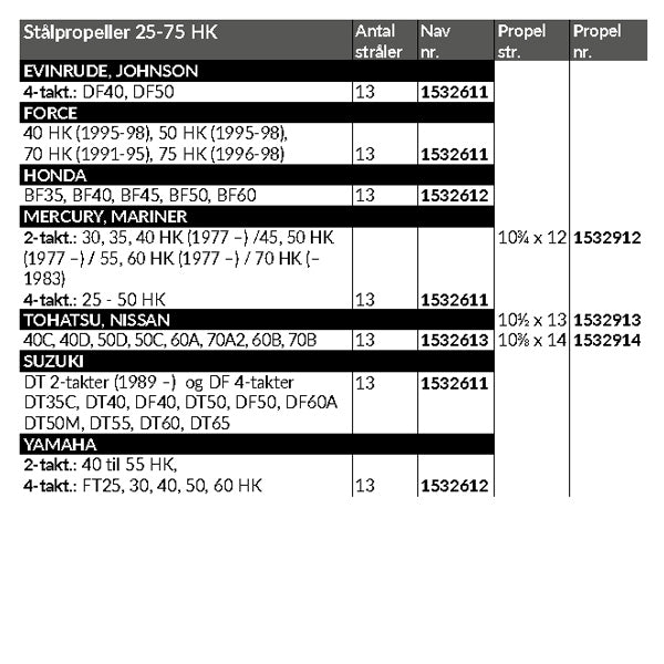 - YAMAHA: 2-takt: 40 till 55 HK; 4-takt: FT25, 30, 40, 50, 60 HK