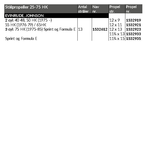 - EVINRUDE, JOHNSON: 2 cyl: 40, 48, 50 HK (1975 -), 55 HK (1976-79), 3 cyl: 75 HK (1975-85) Sprint och Formula E