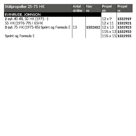 - EVINRUDE, JOHNSON: 2 cyl: 40, 48, 50 hk (1975 -), 55 hk (1976-79), 65 hk; 3 cyl: 75 hk (1975-85) Sprint och Formula E