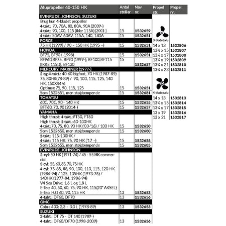 Denna aluminiumpropeller har genomgått omfattande tester och visar prestanda som kan mäta sig med rostfria stålpropellrar, vilket gör den idealisk för motorer med en effekt på 40-150 HK.