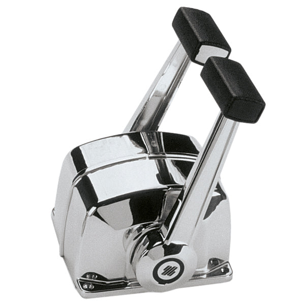 Dubbelspaksreglage för 2 motorer Dubbelverkande reglage för både gas- och växelmanövrering. Lämplig för alla typer av inombordsmotorer • Möjliggör enkel och säker växling genom att förhindra oavsiktlig växelinkoppling om inte motorn går på tomgång • Tillverkad av marin aluminium, förkromad • Infällbart handtag kopplar ur växelspaken för uppvärmning av motorn • Neutral säkerhetsbrytare X12 – 140X12 (tillval) förhindrar start i växel • Överträffar EN ISO 11547-standarderna när X12 säkerhetsbrytare är installerad • För användning med alla Ultraflex reglagekablar förutom C22, C36 och MACH36. • Ultraflex C5-, C16- och MACH5-kablar kräver K35-kit – 140K35Specifikationer