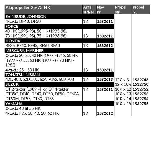 - YAMAHA: 2-takt: 40 till 55 HK; 4-takt: F25, 30, 40, 50, 60 HK
