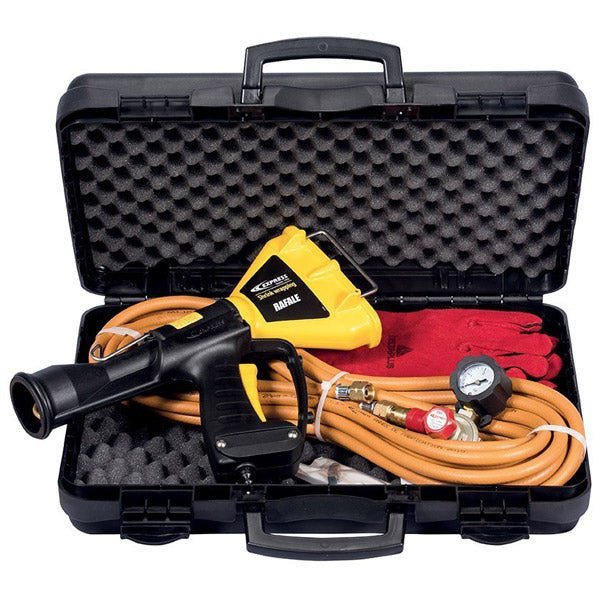 Express Rafale värmepistol är designad för att leverera kraft och precision i ditt arbete. Med en imponerande effekt på upp till 65 kW och en platt låga är denna gasdrivna värmepistol idealisk för att krympa polyeten av olika tjocklekar. Oavsett om du är proffs eller hobby, kommer denna värmepistol att vara ett oumbärligt verktyg i din arsenal.