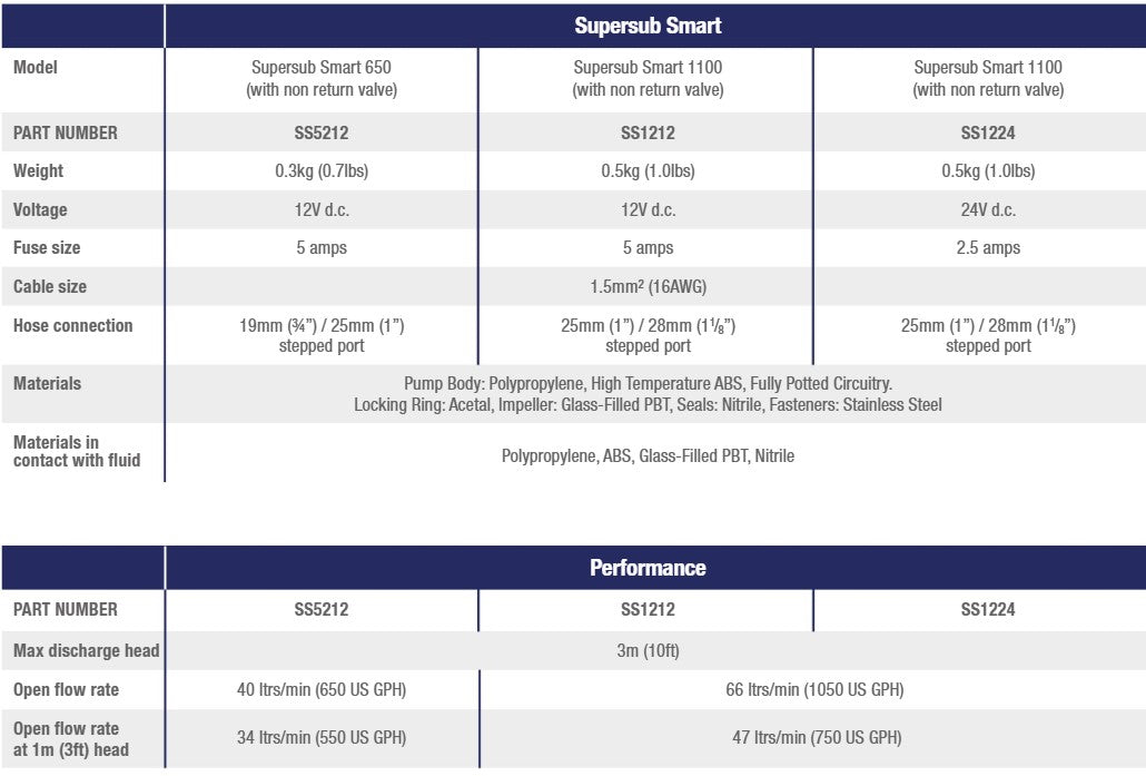 Kan eftermonteras med vinklat monteringsfäste för att underlätta installation och underhåll. · Kompakt och låg profil · Låg energiförbrukning · Lämplig för användning i söt- och saltvatten · Med inbyggd nivåbrytare · Backventil · CE-godkänd · ISO 8849, ISO 115083, ISO 10133, ISO 8846, IP45Specifikationer